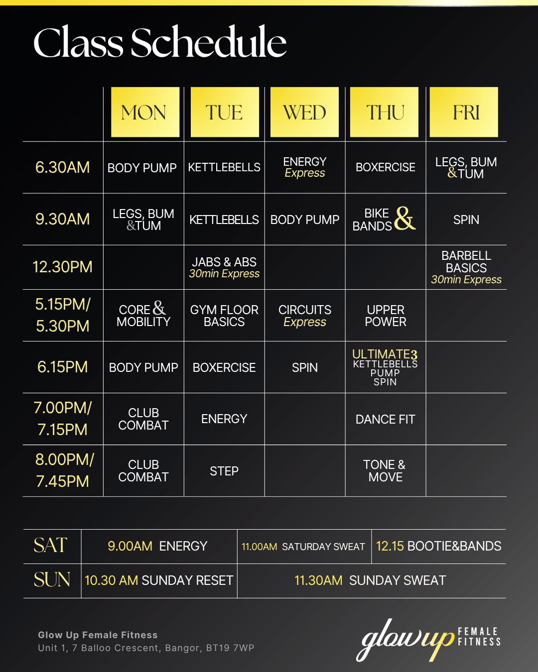 When creating our timetable, we made sure there’s something for everyone. With a variety of classes designed to inspire positive, productive sessions, you’ll work hard, feel good, and have fun—surrounded by an incredible community of supportive women.